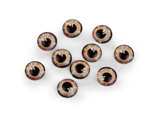 Kulaté skleněné oči mají realistické zpracování panenky. Díky tvaru vypouklé čočky obrázek oka krásně vynikne. Využijete je na tvorbu různých postaviček a zvířátek. Pro jejich přilepení je vhodné použít lepidlo na lepení kamínků. S oblibou se používají i na výrobu bižuterie, jako kabošony jsou vhodné k nalepení do kovového lůžka nebo k obšití korálky a rokajlem. Velice působivé jsou v drátovaných špercích.