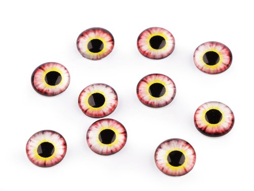 Skleněné kulaté oči mají velice realistické zpracování panenky. Díky tvaru vypouklé čočky obrázek oka krásně vynikne. Využijete je na tvorbu různých postaviček a zvířátek. Pro jejich přilepení je vhodné použít lepidlo na lepení kamínků. S oblibou se používají i na výrobu bižuterie, jako kabošony jsou vhodné k nalepení do kovového lůžka nebo k obšití korálky a rokajlem. Velice působivé jsou v drátovaných špercích.