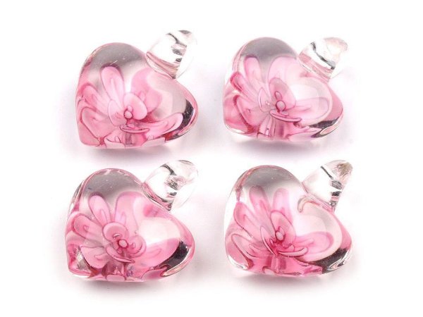 Designově originální přívěsky ve tvaru srdce. Každý kus je originál. Přívěsky jsou vyrobené ze skla, ve svých středech mají neopakovatelné vzory a probarvení. Na krk si je můžete pověsit na řetízek nebo kůži díky velkému praktickému oušku. U tohoto druhu zboží dochází díky technologii výroby k drobným tvarovým odchylkám. Jednotlivé barvy přívěsků v mixu se mohou lišit, fotografie je pouze ilustrační. [Rozměry jednotlivých přívěsků se mohou lehce lišit.]