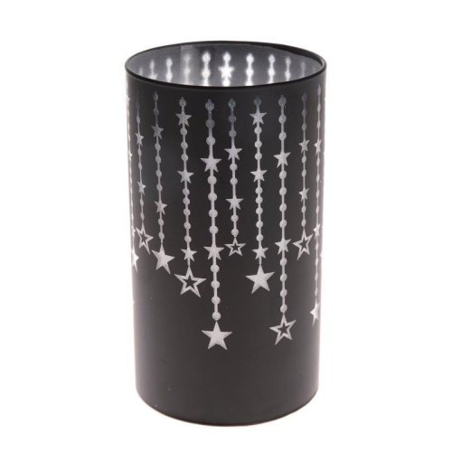 Skleněný svícen s hvězdami a LED světlem velký