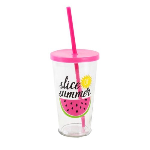 Stylová sklenice "Ovoce" na míchané drinky s víčkem a brčkem - hodí se jak na alkoholické nápoje, tak nealkoholické, s ovocem, ledem atd. Nesmí chybět na žádné párty. Zároveň tuto sklenici oceníte pro její praktičnost - víčko nejen eliminuje případné vytečení tekutiny, ale také v létě ochrání nápoj před vosami a jiným dotěrným hmyzem. Materiál - sklo, plastové víčko i brčko. Objem 450 ml, s motivem jahoda, ananas, pomeranč a meloun.