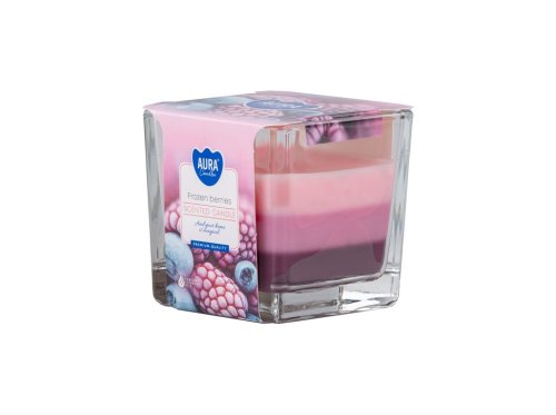 Sklo hranol 80x80 mm ~32h Frozen Berries tříbarevná vonná svíčka