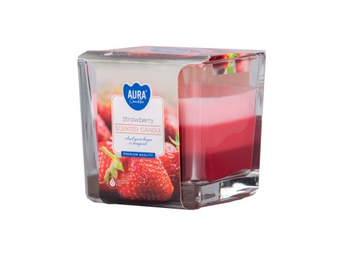 Sklo hranol 80x80 mm ~32h Strawberry tříbarevná vonná svíčka