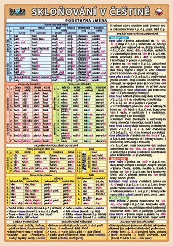 Tabulky všech základních vzorů podstatných jmen, přídavných jmen a zájmen. Titul mimo jiné obsahuje skloňování číslovek a skloňování odlišné od vzorů.