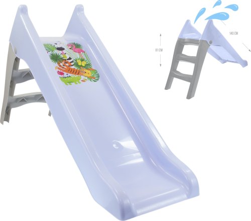 Plastová skluzavka malá s délkou skluzu 140 cm. V modré barvě. Velmi jednoduché sestavení. Skluzavka je velmi stabilní. Pro zpestření hry se dá v horkých letních dnech připojit hadice a vlhčit tuto skluznou plochu osvěžující vodou. Vhodné pro děti od 3 let Materiál: plast, potisk IML Nosnost: 50 kg Hmotnost balení: 5 kg