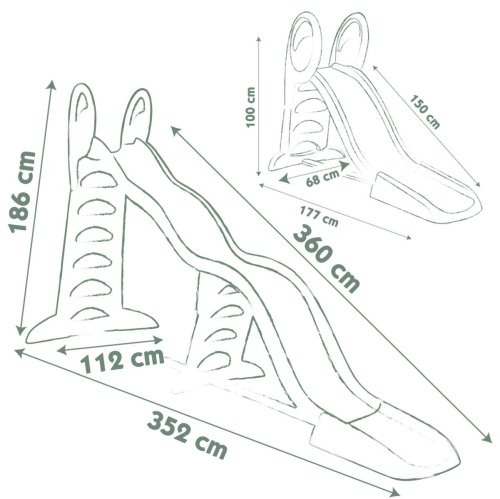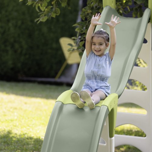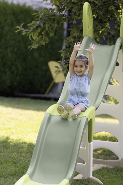 Trojitá zvlněná skluzavka Mega tobogán s délkou skluzavky: 3,6 m. Skluzavka je 2 v 1: roste s dětmi. Jednoduchá skluzavka pro batolata s délkou 1,70 m a poté možnost z ní udělat super 3 vlnnou skluzavku pro starší děti s délkou skluzu 3,60 m.Stabilita a bezpečnost jsou zajištěny díky extra široké základně a vyfukovanému žebříku s ergonomickými držadly. Protiskluzové schůdky.Plastové díly jsou ošetřeny anti-UV, což zajišťuje dobrou odolnost a stálost barev v průběhu času. Tento výrobek obsahuje minimálně 66% recyklovaného materiálu.