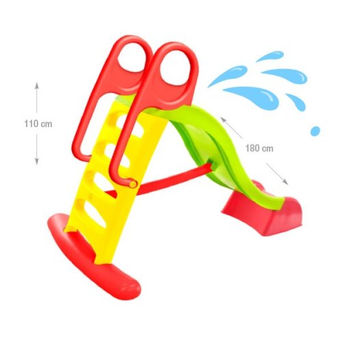 Plastová skluzavka velká s délkou skluzu 180 cm. V zeleno/červeno/žluté barevné kombinaci. Velmi jednoduché sestavení. Skluzavka je velmi stabilní. Vhodné pro děti od 3 let Materiál: plast Nosnost: 50 kg Hmotnost balení: 5 kg