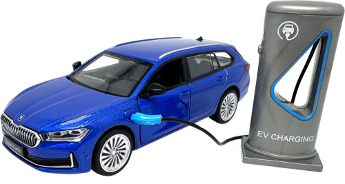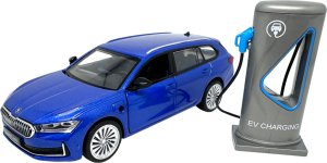 Škoda Superb IV Combi modré + nabíjecí stanice 1:35