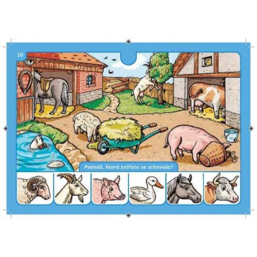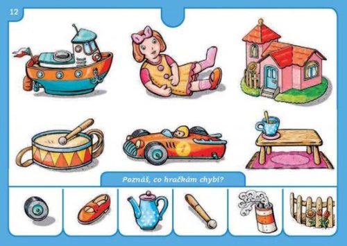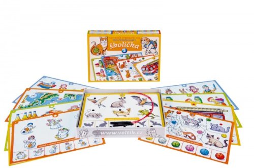 Školička elektrická výuková hra pro děti. Obsahuje 16 listů s mnoha obrázky, mezi nimiž děti hledají souvislosti. Vhodné pro děti od 4 let.