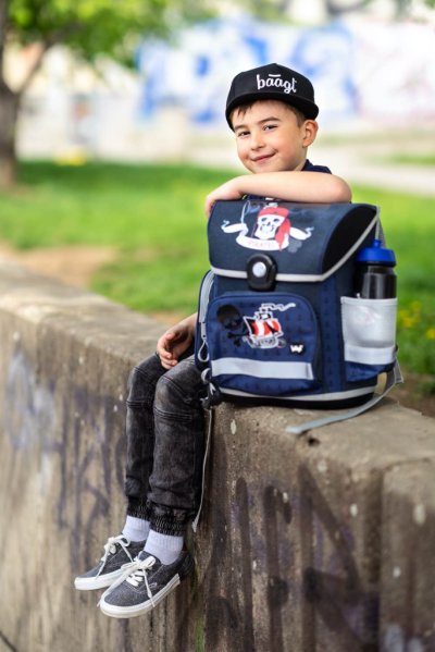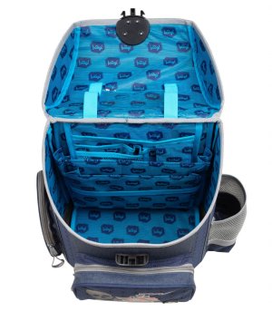 • Školní aktovka s vyztuženým tělem, vnitřním organizérem a třemi oddělenými kapsami a zapínáním na kvalitní přezku.