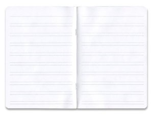 Sešit velikosti A5, 10 linkovaných listů. Jedna pomocná linka na každém řádku.