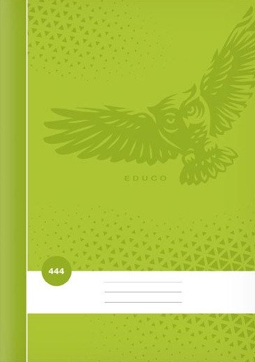 Školní linkovaný sešit ve formátu A4, v zelené barvě, s motivem sovy, v deskách z křídového papíru. <br> <br> Typ: 444 <br> Formát: A4 <br> Motiv: sova <br> Barva: zelená <br> Šířka řádku: 8 mm <br> Počet listů: 40, linkované <br> Gramáž listů papíru: 60 g <br> Desky: matný křídový papír 200 g
