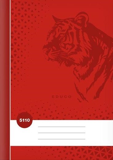 Školní sešit ve formátu A5, čtverečkovaný, v červené barvě, s motivem tygra, v deskách z křídového papíru. Oproti běžným čtverečkovaným sešitům je rozměr čtverečků dvakrát větší. <br> <br> Typ: 5110 <br> Motiv: tygr <br> Formát: A5 <br> Barva: červená <br> Gramáž listů papíru: 60 g <br> Počet listů: 10, čtvereček <br> Rozměr čtverečku: 10 x 10 mm <br> Desky: matný křídový papír 200 g