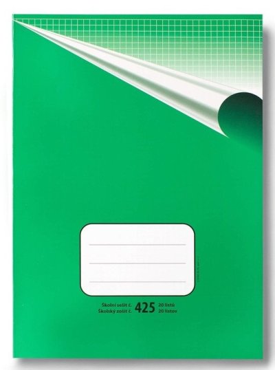 Klasický školní sešit číslo 425, formát A4, 20 listů, čtverečkovaný. br brŠkolní sešity mají pevnou papírovou obálku v klasickém retro designu. Na přední obálce je několikařádkový prostor pro nadepsání jména a příjmení, třídy nebo školního předmětu. br brSešity mají vyšší gramáž papíru - to zajišťuje vyšší pevnost v ohybu i tahu, menší průsvitnost a větší pohodlí při psaní. Sešity jsou vhodné pro psaní tužkou i perem. br brŠkolní sešit 425 br• Formát sešitu: A4 br• Lineatura sešitu: čtverečkovaná, 5 x 5 mm br• Počet listů v sešitu: 20 br• Papír: s vyšší gramáží 70g/m2 br• Vazba: šitá
