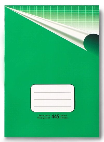 Klasický školní sešit číslo 445, formát A4, 40 listů, čtverečkovaný. br brŠkolní sešity mají pevnou papírovou obálku v klasickém retro designu. Na přední obálce je několikařádkový prostor pro nadepsání jména a příjmení, třídy nebo školního předmětu. br brSešity mají vyšší gramáž papíru - to zajišťuje vyšší pevnost v ohybu i tahu, menší průsvitnost a větší pohodlí při psaní. Sešity jsou vhodné pro psaní tužkou i perem. br brŠkolní sešit 445 br• Formát sešitu: A4 br• Lineatura sešitu: čtverečkovaná, 5 x 5 mm br• Počet listů v sešitu: 40 br• Papír: s vyšší gramáží 70g/m2 br• Vazba: šitá