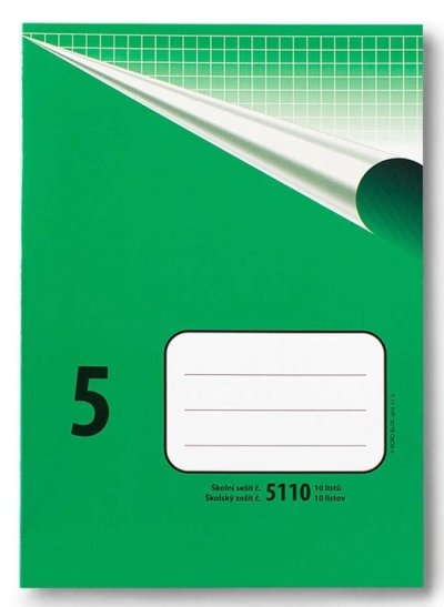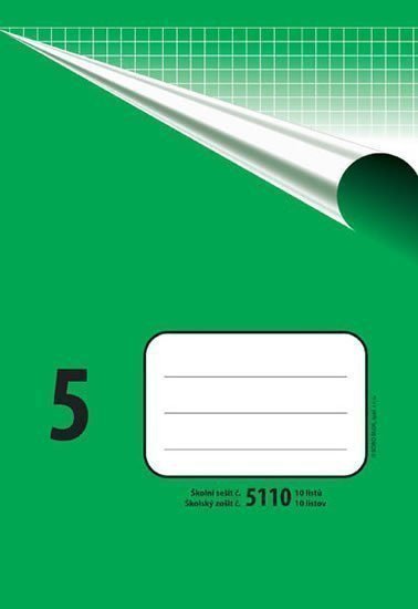Klasický školní sešit číslo 5110, formát A5, 10 listů, čtverečkovaný, 10 x 10 mm. br brŠkolní sešity mají pevnou papírovou obálku v klasickém retro designu. Na přední obálce je několikařádkový prostor pro nadepsání jména a příjmení, třídy nebo školního předmětu. br brSešity mají vyšší gramáž papíru - to zajišťuje vyšší pevnost v ohybu i tahu, menší průsvitnost a větší pohodlí při psaní. Sešity jsou vhodné pro psaní tužkou i perem. br brŠkolní sešit 5110 br• Formát sešitu: A5 br• Lineatura sešitu: čtverečkovaná, 10 x 10 mm br• Počet listů v sešitu: 10 br• Papír: s vyšší gramáží 70g/m2 br• Vazba: šitá