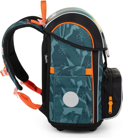 Aktovka: Školní aktovka z řady Premium je anatomicky tvarovaná a zajišťuje tak správné usazení na zádech. Vyztužená záda a vnitřní výztuha udržují stálý tvar batohu. Polstrování je z příjemného prodyšného materiálu, široké měkčené popruhy jsou navrženy tak, aby dokonale přilnuly a rovnoměrně zatížily ramena dítěte. Aktovka se skládá z jedné prostorné komory, kam se pohodlně vejdou všechny školní pomůcky pro děti v 1. a ve 2. třídě. Dno batohu je z pevného materiálu, chrání tím obsah před převržením a vysypáním. Zapínání je na bezpečnostní přezku. Přední kapsička je určena na svačinu, nechybí řada reflexních prvků, díky kterým je aktovka viditelnější. Objem: 28 l. Nosnost: 8 kg. Sáček: Školní sáček na cvičky vyrobený z kvalitního materiálu. Sáček se uzavírá stažením šňůrek. Vhodný jak do školy, tak na sport a další volnočasové aktivity dětí. Penál: Jednopatrový školní penál se dvěma chlopněmi bez náplně. Gumová poutka k uchycení psacích potřeb. Na vnitřní chlopni je průhledná fólie pro rozvrh hodin.