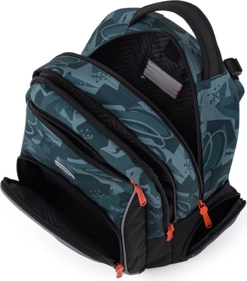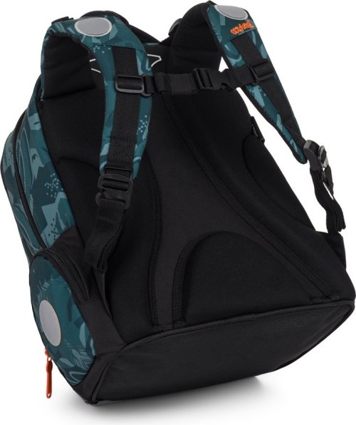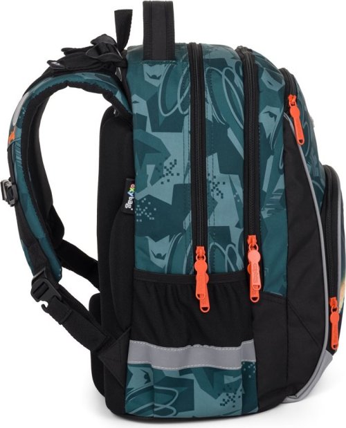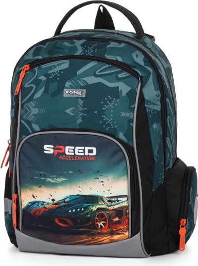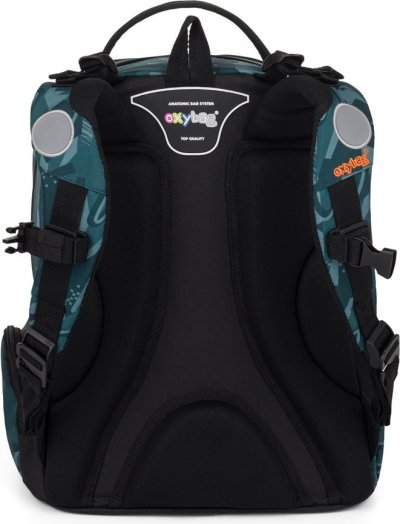 Školní batoh OXY GO zaujme moderním designem a promyšlenou funkčností. Má anatomicky tvarovaná, prodyšná záda a nastavitelné ramenní popruhy pro pohodlné nošení. Přidané háčky umožňují uchycení dlouhých popruhů. Vnitřní kapsy nabízí dostatek místa na učebnice, sešity i další potřeby, pevné nepromokavé dno chrání obsah před ušpiněním a protečením. Boční kapsy, jedna na zip a jedna otevřená, slouží např. na láhev. Reflexní prvky zajišťují bezpečnost. Batoh je ideální pro děti od 1. do 3. třídy vysoké od 125 cm. Délka zádového panelu je 39 cm, objem 22 l, hmotnost 930 g, nosnost 8 kg. Sáček: Praktický na cvičky nebo volnočasové aktivity, uzavírá se šňůrkami. Penál: Jednopatrový se dvěma chlopněmi, poutka na psací potřeby a průhledná fólie na rozvrh hodin.