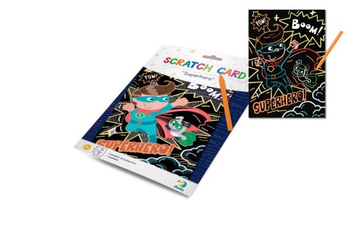 Škrabací obrázek, kde perem šeškrábete dle linek kresbu s motivem superhrdiny. Dítě nakonec získá obrázek, kterým si může vyzdobit pokojíček, přičemž samo získá mnoho potřebných dovedností, jako je pozornost, trpělivost, opatrnost a přispěje k rozvoji tvořivého talentu a motoriky.