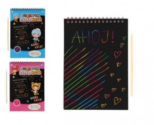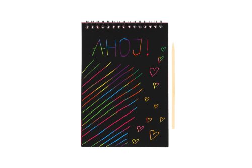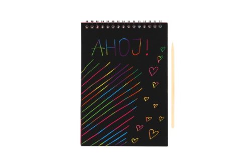 Děti se mohou kreativně vydovádějte na vyškrabovacím notesu. Na jednotlivých listech mohou pomocí přiloženého vyškrabovacího pera vytvářet různé pestrobarevné obrázky. Obsahuje 10 listů Rozměr notesu: 20 x 14 cm
