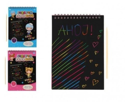 Děti se mohou kreativně vydovádějte na vyškrabovacím notesu. Na jednotlivých listech mohou pomocí přiloženého vyškrabovacího pera vytvářet různé pestrobarevné obrázky. Obsahuje 10 listůRozměr notesu: 20 x 14 cm
