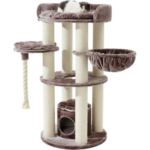 Vysoce kvalitní a pevné škrabadlo má vše, co si kočičí srdce může přát, a stane se pro vaši kočku vyhledávaným útočištěm. Kočičí strom Nobby Arda nabízí kruhové plošiny, velkou vyhlídku s polštáři, domeček, hamaku a šplhací lano. Stabilitu zajišťuje kruhová základní deska o průměru 70 cm a široké kmeny o průměru 12 cm ovinuté sisalovým provazem. Rozměry (cca): základna Ø 70 cm celková výška 138 cm sloupky Ø 12 cm domeček Ø 35 × 28 cm vyhlídka Ø 70 × 12 cm výška patra 60 cm odpočívadlo Ø 45 cm hamaka Ø 45 cm lano Ø 5 × 60 cm Barva: světle hnědá (cappuccino), bílé (krémové) kmeny Montážní návod je k dispozici ZDE.