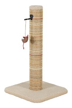 Sloupek je potažen vzorovaným sisalovým kobercem, který je odolný a vhodný pro intenzivní škrábání. Součástí je také hračka se šantou kočičí, která podněcuje kočku ke hře a přirozené aktivitě. Měkká textilní základna poskytuje pohodlí a zároveň zajišťuje vysokou stabilitu celého produktu.