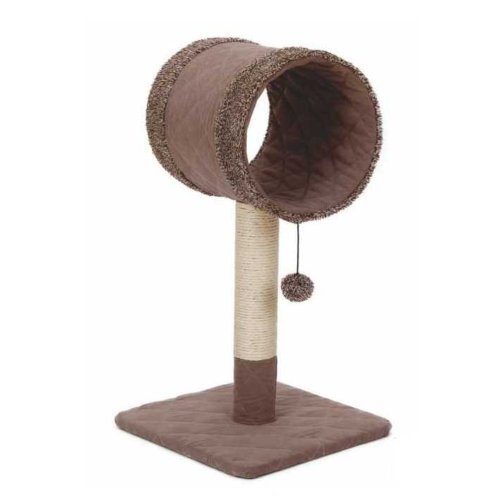 Škrábadlo se skrýší a odpočívadlem. Nabízí možnost broušení drápků, odpočinku i relaxace. Vyrobeno z plyše a sisalu. Doplněno visící hračkou lákající ke hře.