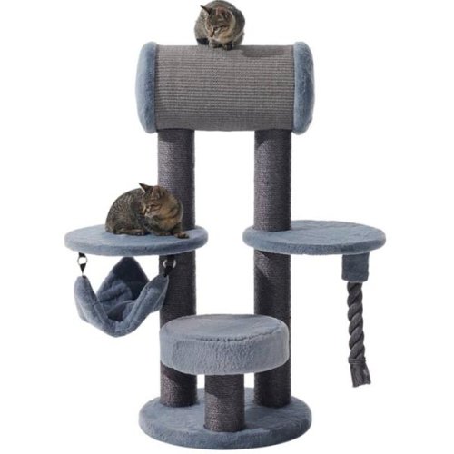 spodní odpočívadlo o průměru 40 × 8 cm hamaka 50 × 43 cm středová odpočívadla o průměru 40 cm horní sisalový válec o průměru 25 × 55 cm