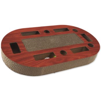 Interaktivní kartonové škrabadlo pro kočky se šantou, barevné provedení ve vzoru třešeň.