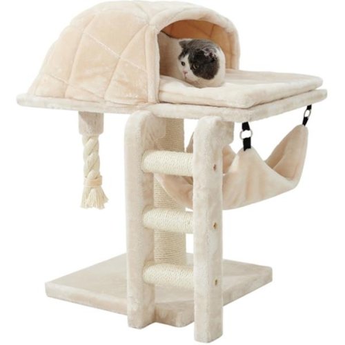 Škrabadlo pro kočky nabízí všestranné využití. Kočky musí mít možnost k broušení svých drápků. Ve volné přírodě jim k tomu nejlépe slouží stromy a jejich kůra. V bytě jim pak musíte vy nabídnout tu pravou a vhodnou alternativu. Jinak si malý nezbeda najde náhradu například ve vašem nábytku, křesle nebo koberci. Škrabadlo je vyvedené v elegantní moderní béžové barvě, obsahuje závěsné odpočívadlo, horní odpočívadlo s měkkou kapsou, provaz, sisalový kmen a závěsné odpočívadlo. Parametry: