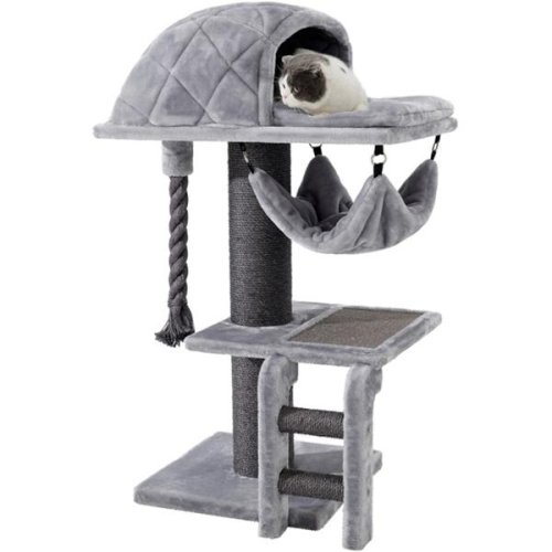 Škrabadlo pro kočky nabízí všestranné využití. Kočky musí mít možnost k broušení svých drápků. Ve volné přírodě jim k tomu nejlépe slouží stromy a jejich kůra. V bytě jim pak musíte vy nabídnout tu pravou a vhodnou alternativu. Jinak si malý nezbeda najde náhradu například ve vašem nábytku, křesle nebo koberci. Škrabadlo je vyvedené v elegantní šedé barvě, obsahuje sisalový kmen, horní odpočívadlo s měkkou kapsou, závěsné odpočívadlo, desku se sisalem, žebřík se sisalem a kvalitní provaz. Parametry: