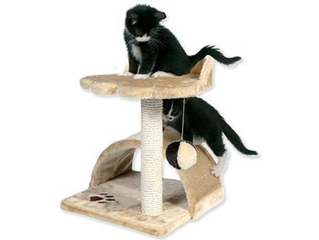 Skvělé odpočívadlo se škrabadlem pro kočky. Odpočívadlo je pokryté měkkým plyšem. Základní deska ve tvaru tlapky. Na ní je prolézací oblouk, který je pokrytý sisalem a slouží k obrušování drápků. Na sloupku je polstrované ležení pro kočku, které slouží k odpočinku. Sloupek má průměr 6 cm a slouží jako škrabadlo. Je pokrytý sisalem. Součástí je míček na provázku, který bude neustále kočku lákat ke hře.