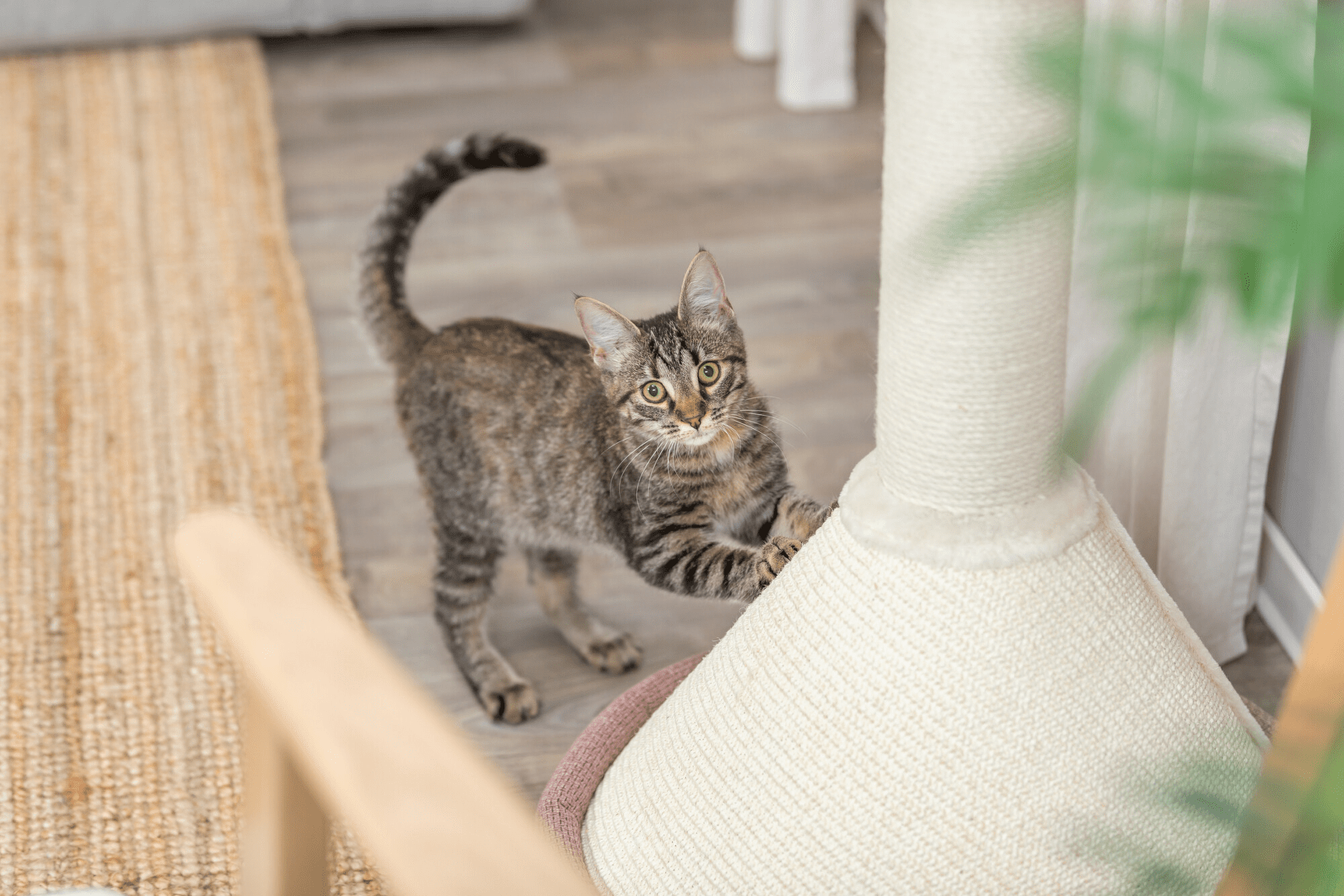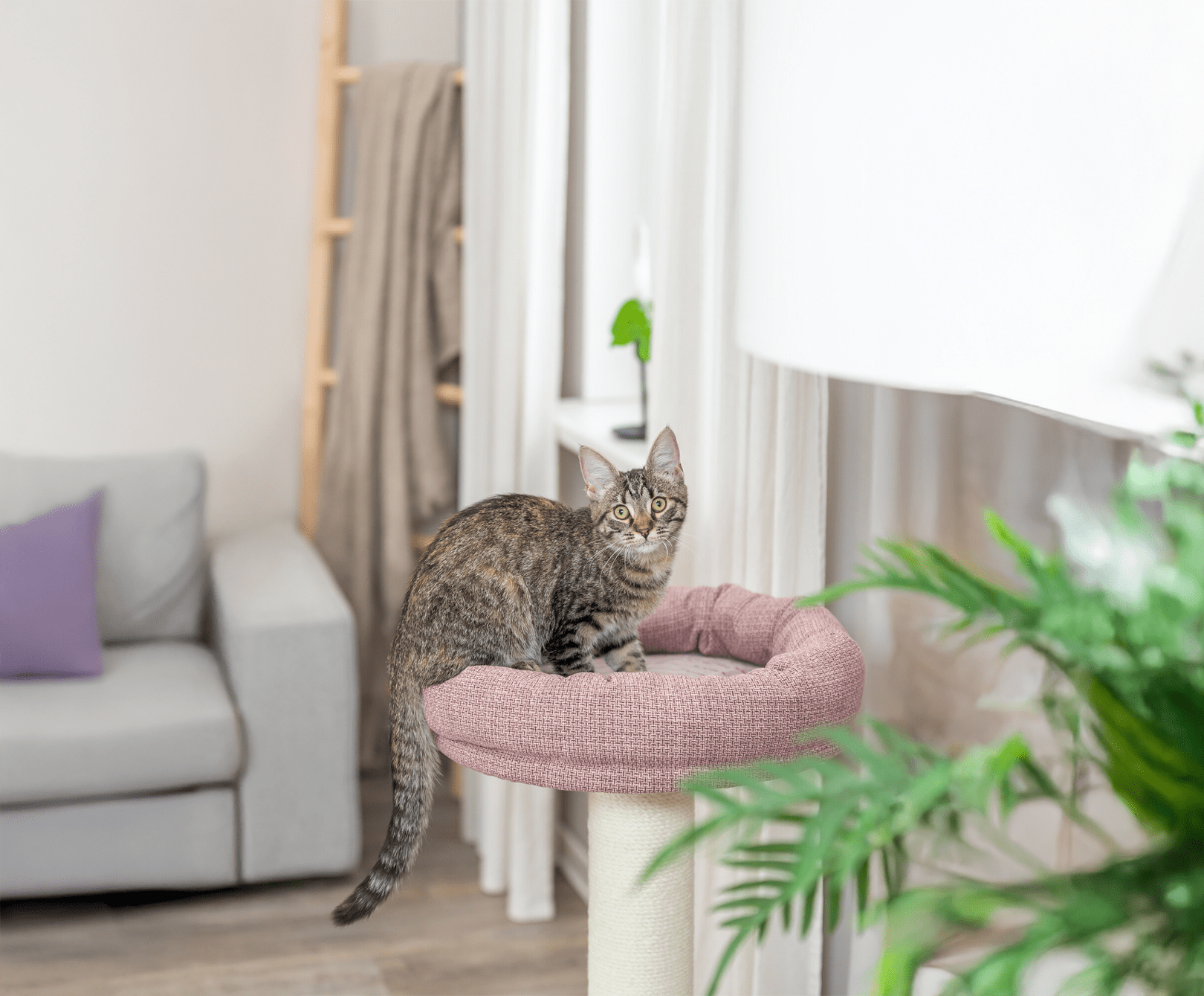 Škrabadlo spojuje odpočinek i zábavu v jednom. Stabilní základna se sisalovým povrchem nabízí kočkám ideální místo k broušení drápků, zatímco polstrovaný rošt s odnímatelným plyšovým lůžkem je perfektní pro lenošení.