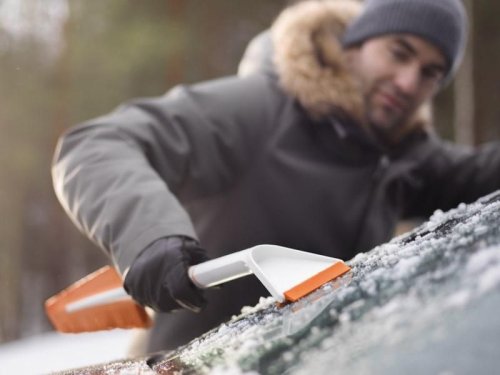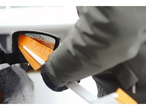 Škrabka na led je oddělitelná od kartáčku. Kartáček je silikonový, nedochází tak k žádnému poškrábání. Má na druhé straně stěrač na odstranění vody a mokrého sněhu. Čepel škrabky nepoškozuje ochrannou vrstu skel a přizpůsobí se zakřivění skel. Délka škrabky: 10 cm. Celková délka: 67 cm. Původní Fiskars číslo: 143062.