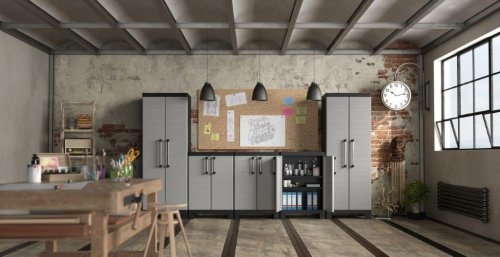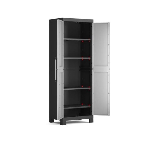 Skříň Keter Detroit High obsahuje celkem 4 přídavné police, které maximálně zpřehlední organizaci vnitřního prostoru. Každá z nich využívá bezpečnostní pojistku SLO pro snadné výškové přizpůsobení a rovněž nabízí maximální nosnost až 15 kg, což přijde vhod pro výrazně těžší předměty všeho druhu. V útrobách skříně tak pohodlně uchováte i rozličné dílenské a zahradní nářadí, které by se jinam nevešlo. Velkou výhodou produktové řady Keter Detroit je také jednotný spojovací systém, díky kterému vytvoříte kompletní skříňovou stěnu pro všestranné využití dle vašich potřeb a preferencí.