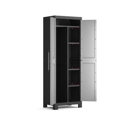 Skříň Keter Detroit Utility obsahuje celkem 4 přídavné police, které maximálně zpřehlední organizaci vnitřního prostoru. Každá z nich využívá bezpečnostní pojistku SLO, se kterou si výškově přizpůsobíte skříň podle požadovaného obsahu. Dolní police nabízí nosnost až 10 kg a horní police odolá většímu zatížení až 15 kg, proto přijde vhod pro výrazně těžší předměty všeho druhu. V útrobách skříně tedy pohodlně uchováte i rozličné dílenské a zahradní nářadí, které by se jinam nevešlo. Velkou výhodou produktové řady Keter Detroit je také jednotný spojovací systém, díky kterému vytvoříte kompletní skříňovou stěnu pro všestranné využití dle vašich potřeb a preferencí.
