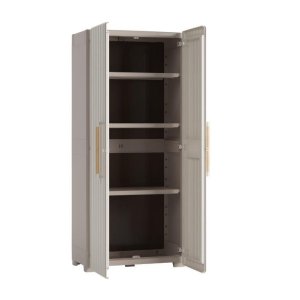 Skříň Keter Groove High vám zajistí dostatek úložného prostoru na nářadí, zahradní náčiní, pomůcky na uklízení a další věci. Využijete ji jak v interiéru, tak v exteriéru. Tato elegantní a praktická skříň perfektně doplní vybavení vaší garáže, dílny i zahradního domku. Dřevěná madla a kovové panty vám umožní skříň otevřít doširoka, takže máte pohodlný přístup k uloženým předmětům.