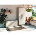 Skříň je vyrobena z kvalitního plastu s ochranou proti UV záření, proto se nemusíte bát vyblednutí barev ani deformace materiálu při vystavení slunečním paprskům. Voděodolnost s certifikací IPX3 zajišťuje ochranu před stříkající vodou, což oceníte hlavně v garáži nebo na kryté terase.
