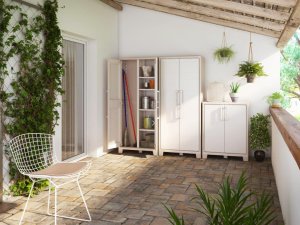 Konstrukce skříně je ideální pro vnitřní i venkovní zastřešené prostory. Díky kompaktním rozměrům ji snadno umístíte pod stůl, do rohu nebo do výklenku. Rychlá montáž bez nutnosti speciálního nářadí usnadní instalaci v jakémkoliv prostředí.