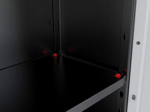 Plastová konstrukce skříně je lehká a přitom pevná. Skříň váží pouhých 7,5 kg, takže ji snadno přenesete podle potřeby. Soft touch rukojeti zvyšují komfort při používání a nastavitelné nožky zajišťují stabilitu i na nerovných podlahách. Celou skříň sestavíte během několika minut bez použití speciálního nářadí.