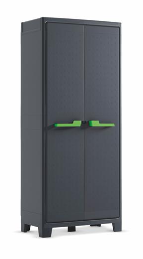 Konstrukce z kvalitního plastu vyčnívá svým moderním vzhledem a poskytuje skříni zvýšenou odolnost vůči prachu, vlhkosti, vodě, rzi, hnilobě, UV záření či hrubému zacházení. Zabudovaný podlahový panel chrání obsah skříně proti vodě, bahnu, prachu a dalším nečistotám. Díky možnosti uzamčení ochráníte veškeré uschované cennosti před odcizením, tudíž bude vnitřní obsah v naprostém bezpečí za každé situace. Skříň se díky své voděodolnosti hodí i do venkovního prostředí.