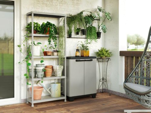 Skříň obsahuje celkem 1 přídavnou polici s výraznou nosností až 15 kg, která přijde vhod pro výrazně těžší předměty všeho druhu. Lze ji tedy využít pro skladování dílenského nářadí či zahradnických potřeb, kdy přijde vhod pro uložení náčiní, které by se jinam nevešlo. Díky svému provedení v univerzální šedé barvě zapadne do každého prostoru bez ohledu na jeho konceptuální styl.