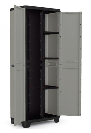 Skříň obsahuje celkem 3 přídavné police - každá s výraznou nosností až 10 kg, které přijdou vhod pro výrazně těžší předměty všeho druhu. Lze ji tedy využít pro skladování dílenského nářadí či zahradnických potřeb, kdy přijde vhod pro uložení náčiní s dlouhou násadou, které by se jinam nevešlo. Díky svému provedení v univerzální šedé barvě zapadne do každého prostoru bez ohledu na jeho konceptuální styl.