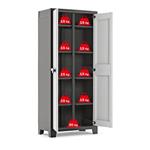 Skříň obsahuje celkem 8 přídavných polic – každá s výraznou nosností až 15 kg. Hodí se tedy pro skladování i výrazně těžších předmětů. Můžete využít také její zesílené dno, které unese dohromady 30 kg. Uskladněte do ní dílenské nářadí, zahradnické potřeby, pomůcky a prostředky pro úklid či praní nebo na poličky vyskládejte zavařeniny (marmelády, kompoty, pyré). Výšku poliček si navíc zvolíte podle velikosti uložených předmětů. Nebo je na jedné straně sundejte úplně a vytvořte prostor pro náčiní s dlouhou násadou, jako je například koště.