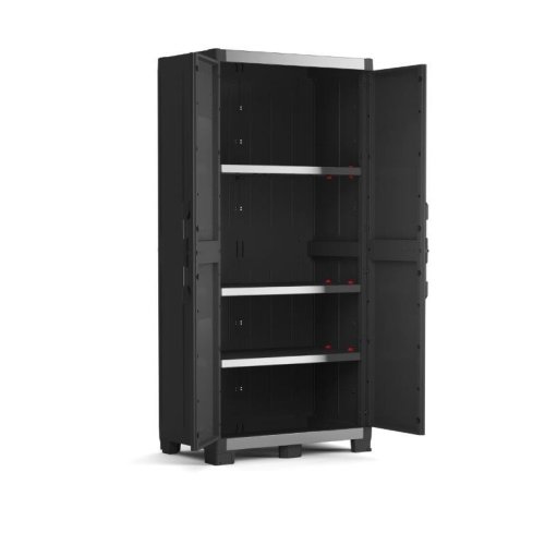 Skříň obsahuje celkem 3 přídavné police - každá s výraznou nosností až 45 kg, které přijdou vhod pro výrazně těžší předměty všeho druhu. Lze ji tedy využít pro skladování dílenského nářadí či zahradnických potřeb, kdy přijde vhod pro uložení náčiní s dlouhou násadou, které by se jinam nevešlo.