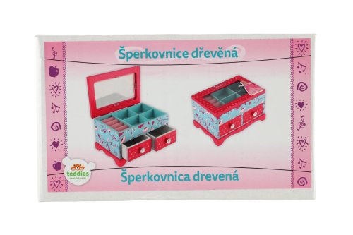 Šperkovnice bude ideálním místem pro uložení pokladů každé dívky. Je vyrobena ze dřeva a má skleněné víko. Šperkovnice má modrou barvu a je pomalována krásným motivem kytiček. Odklípěcí víko je růžové, má na sobě kytičky a princeznu. Tato barevná kombinace bude ideální doplněk pro dětský pokoj. Uvnitř je prostor pro pořádání suvenýrů nebo šperků. Šperkovnice má dvě zásuvky. Rozměr šperkovnice: 18x12,5x12cm Není hračka