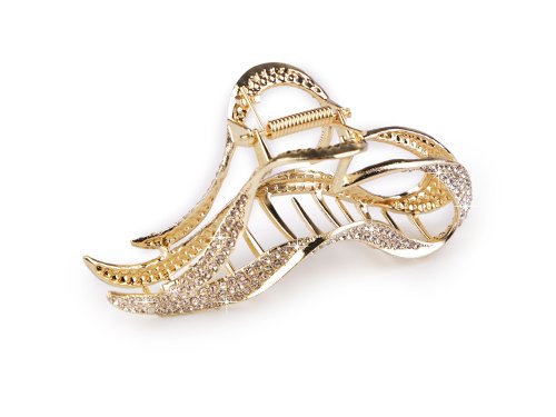 Kovový skřipec do vlasů [je bohatě zdobený] třpytivými broušenými kamínky, díky nimž je nepřehlédnutelný. Vytvoří slavnostní účes během chvilky, oblíbíte si jej i na všední nošení. [Je velice kvalitní, drží ]přesně na místě díky svému silnému stisku a dlouhých zubů. [Skřipec č.3 je navíc dozdobený plastovými perlami.]