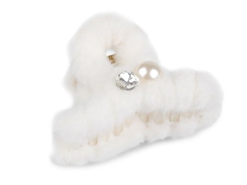 Skřipec do vlasů kožešinový s perlou a broušeným kamenem - Pouze prodejny
