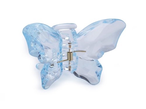 Skřipec do vlasů ve tvaru motýla je elegantním doplňkem, který dodá vašemu účesu romantický vzhled. Na první pohled zaujme svým zajímavým zpracováním z transparentního plastu, který vytvarovanými ploškami efektně zachytává světlo a vytváří dojem drahokamu. Skřipec vykouzlí poutavý účes během chvilky. Ocení jej dívky a ženy, které nemají rády gumičky. Drží přesně na místě díky svému silnému stisku a dlouhých zubů.